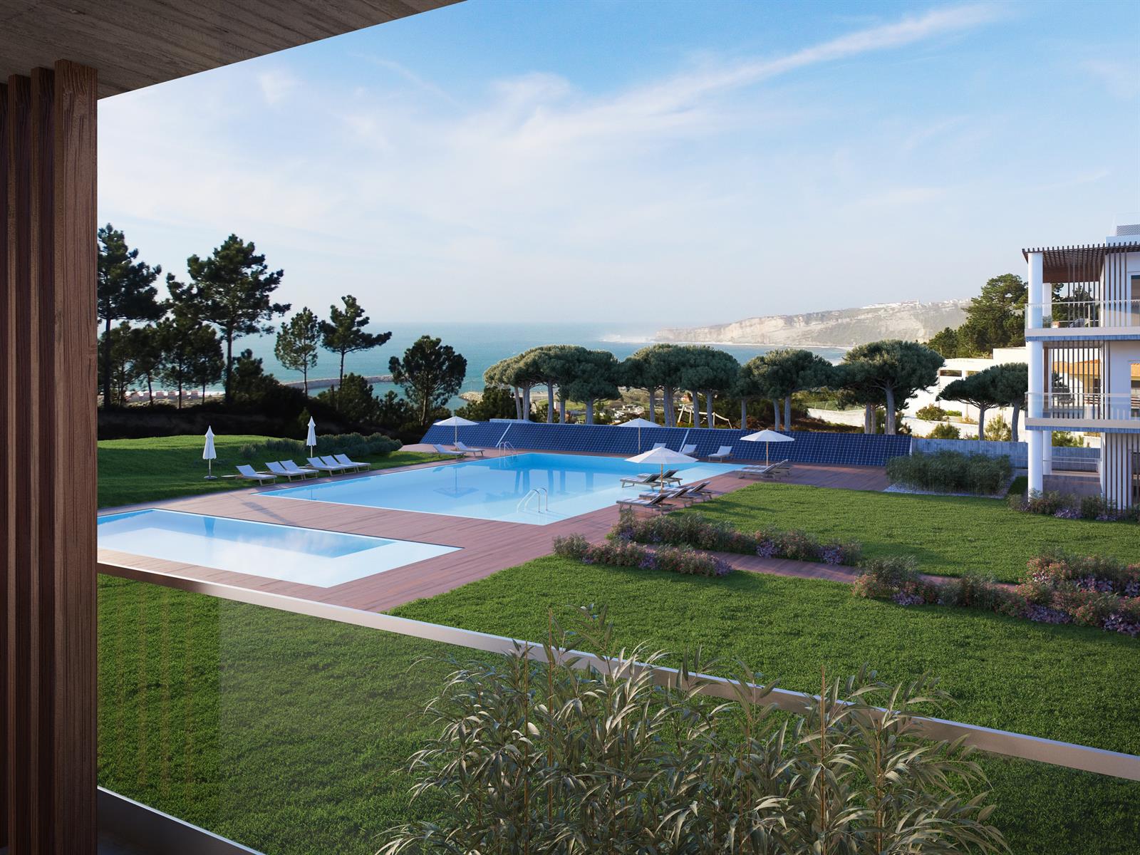 Zeer luxueuze appartementen met zicht op Nazaré, de stranden, oceaan & jachthaven. Unieke setting met tal van extra's zoals 24/7 conciërge, fitness ruimte, verwarmd zwembad, ondergrondse staanplaats, etc.