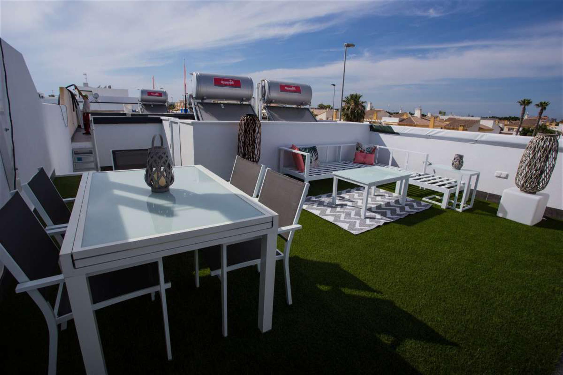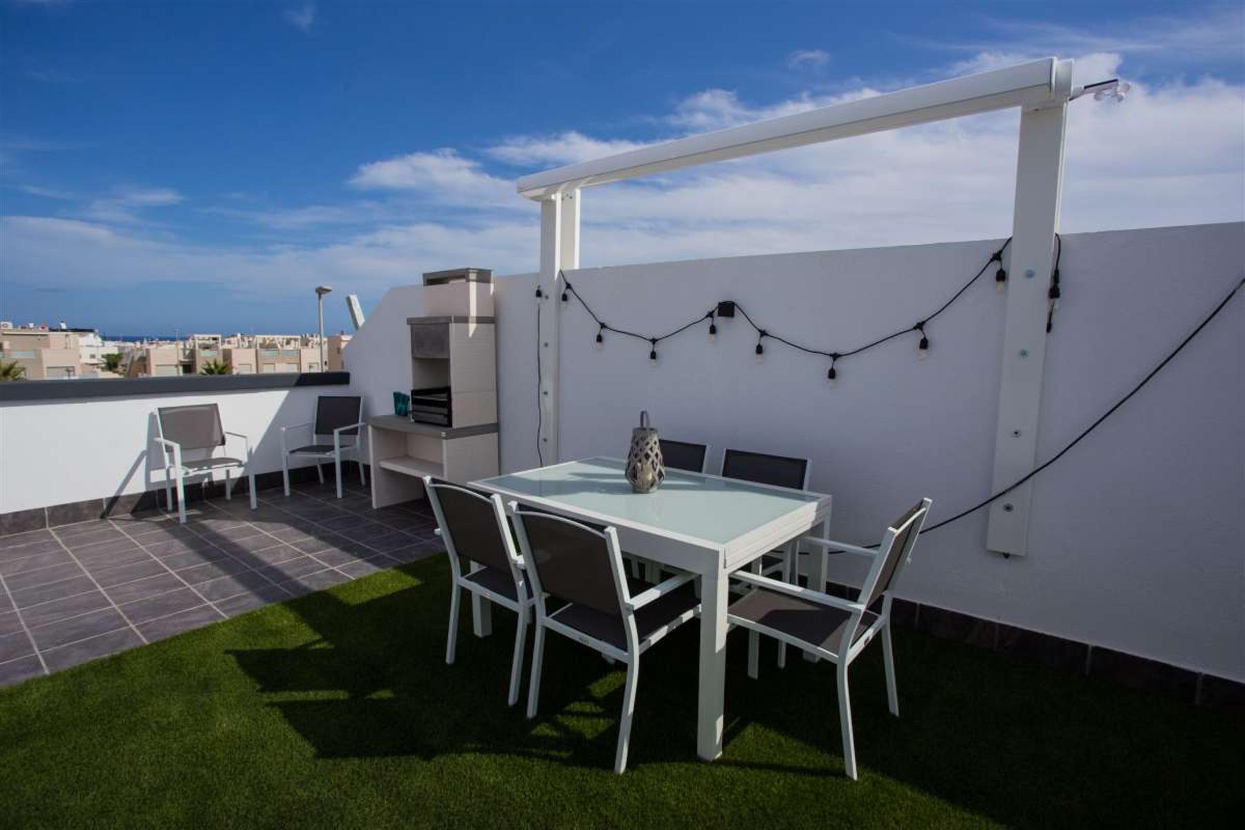 Prijzen vanaf € 139 000 – € 149 000 Ongelooflijke opportuniteit, op wandelafstand van het strand en het nieuwe winkelcentrum Plaza Nueva. Wij stellen u deze residentie voor die bestaat uit 36 nieuwe en moderne bungalows, met garage, gemeenschappelijk zwembad en paddle tennisbaan, allemaal gelegen in de hoofdstraat van Torre de la Horadada, 250m van het winkelcentrum en 500m van de jachthaven en het strand. De bungalows hebben 2 slaapkamers en 1 badkamer. U kunt kiezen tussen de begane grond met tuin of de eerste verdieping met solarium en uitzicht op zee. Bouwjaar: sleutelklaar
