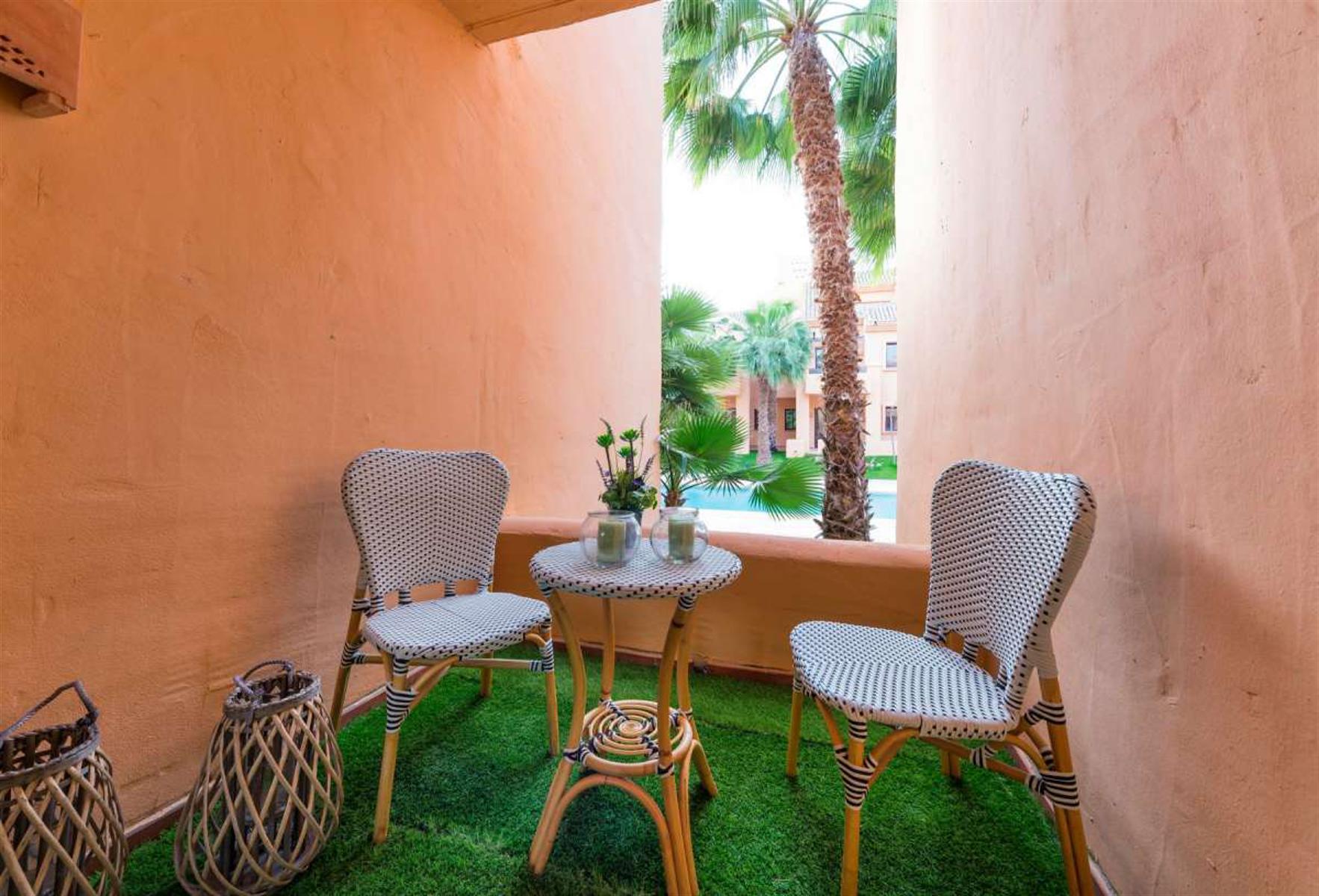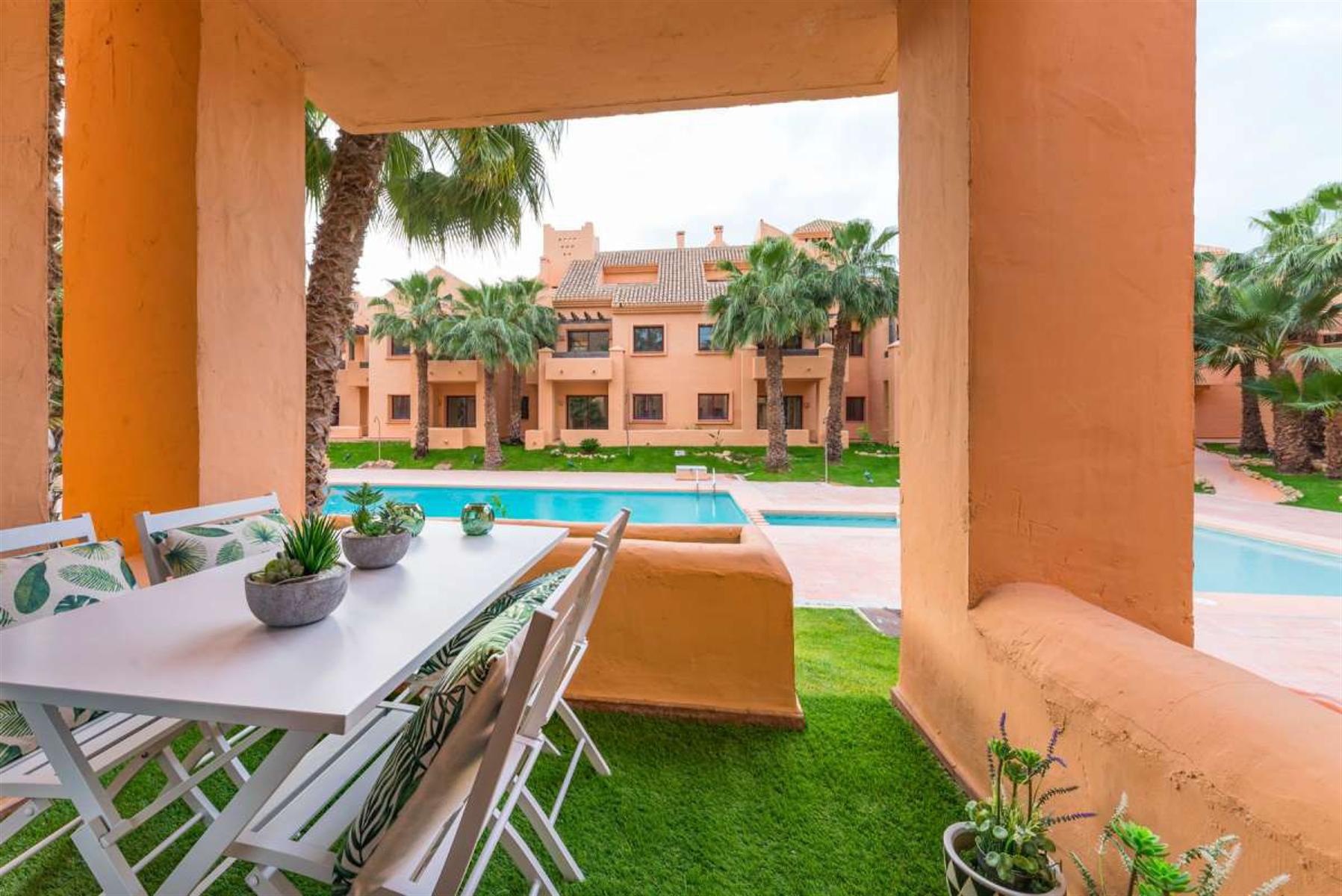Prijzen vanaf € 148 000 - € 201 000 1 slaapkamer vanaf € 103 000 2 slaapkamers vanaf € 148 000 3 slaapkamers vanaf € 191 000 Traditioneel resort in Los Alcázares, op slechts 130 meter van de Mar Menor aan de Costa Cálida. Op loopafstand van het plaatselijke winkelcentrum en op 5 minuten rijden van het stadscentrum, waar een nog grotere aanbod van winkels beschikbaar is. Dankzij de locatie en kenmerken van het resort is dit de ideale investeringsmogelijkheid. Het resort bestaat uit verschillende appartementenblokken met appartementen met 1, 2 en 3 slaapkamers in verschillende modellen: begane grond met een terras / tuin en directe toegang tot het zwembad, bovenste verdieping met een terras met uitzicht op het zwembad, en appartementen met twee etages met 3 slaapkamers. Alle appartementen hebben een open woonkamer en eetkamer met een aparte keuken. De appartementen zijn inclusief: volledig geïnstalleerde AC, volledig uitgeruste keuken, pre-installatie voor een alarm, een opslageenheid en een parkeerplaats in de garage. Het resort is omheind en heeft een centrale toegangspoort, met 24-uurs bewaking. De gemeenschappelijke ruimtes bestaan uit een zwembad, prachtig aangelegde tuinen met palmbomen en een parkeergarage. Bouwjaar: sleutelklaar